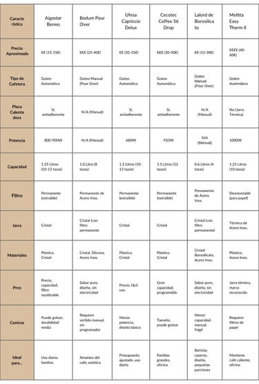 Comparativa de Cafeteras de Goteo